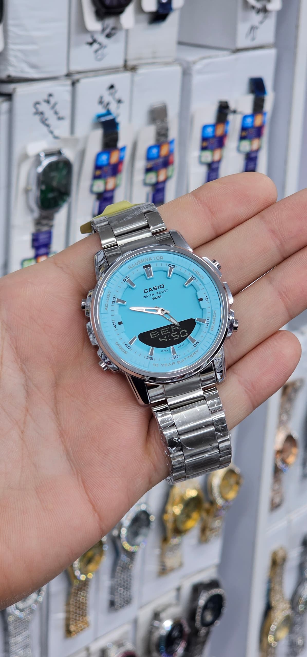 کاسیو مدل AMW 880 - 5574 رنگ ثابت ضدآب در حد شستشو دست پمپی موتور ژاپن نمایش ساعت جهانی زنگ هشدار روزانه